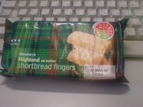 1年間,イギリスへ留学していた人がお土産をもってきてくれた.船便で送ったそうで,本人の帰国から1ヶ月遅れだが(^^) イギリスの食事は美味しくないというけれど,これは食べてみると結構,美味しい.バタークッキーであり,ほどよい塩味が効いていて,(…